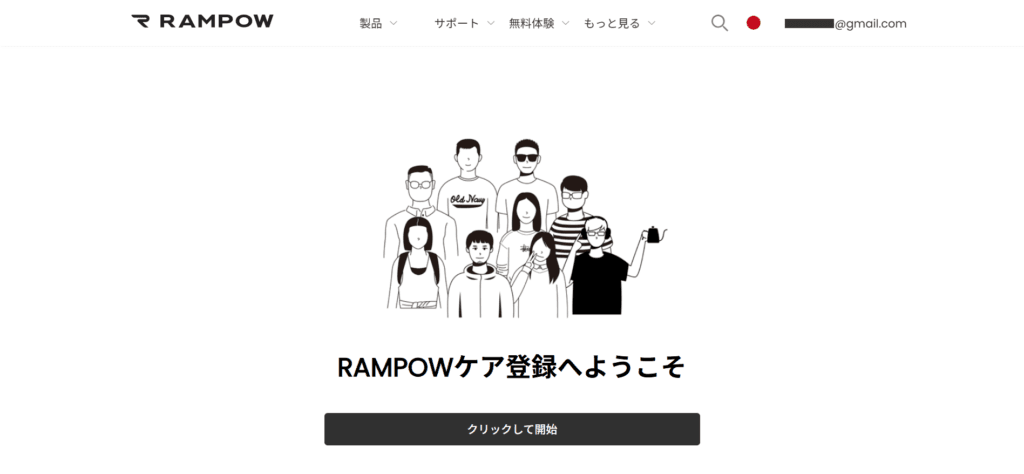 RAMPOW公式ページにアクセスし、会員登録またはログインしてから製品を保証登録してください。パソコンの場合は次のようになります。